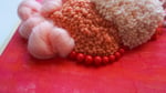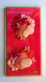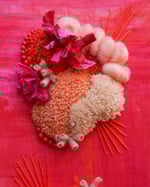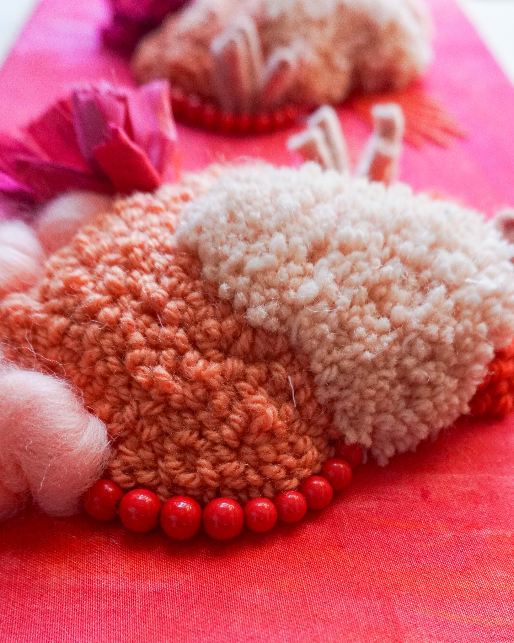 I hand-painted the fabric using fiber-reactive dye and then hand-stitched the punch needle segments onto the fabric like puzzle pieces.