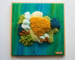 I hand-painted the fabric using fiber-reactive dye and then hand-stitched the punch needle segments onto the fabric like puzzle pieces.